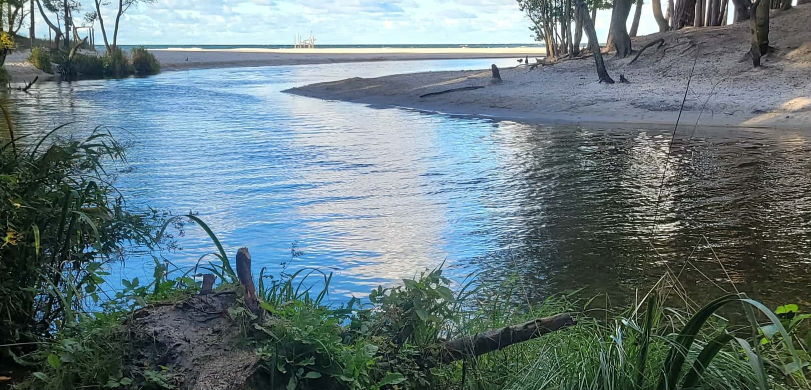 - Co to jest: Unikalny punkt, gdzie rzeka wpada do Bałtyku, tworząc malownicze łuki piasku i wody.